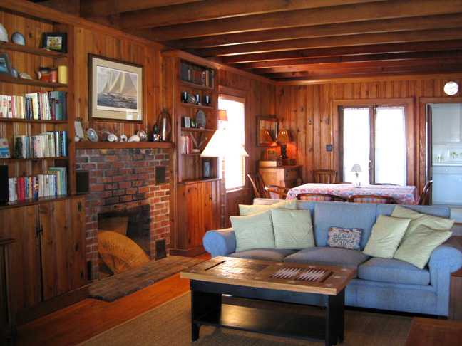 pine paneling makes the main room a wonderful place to entertain